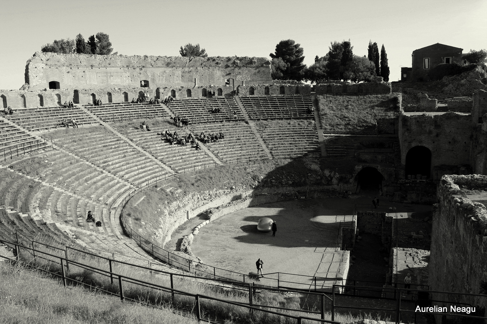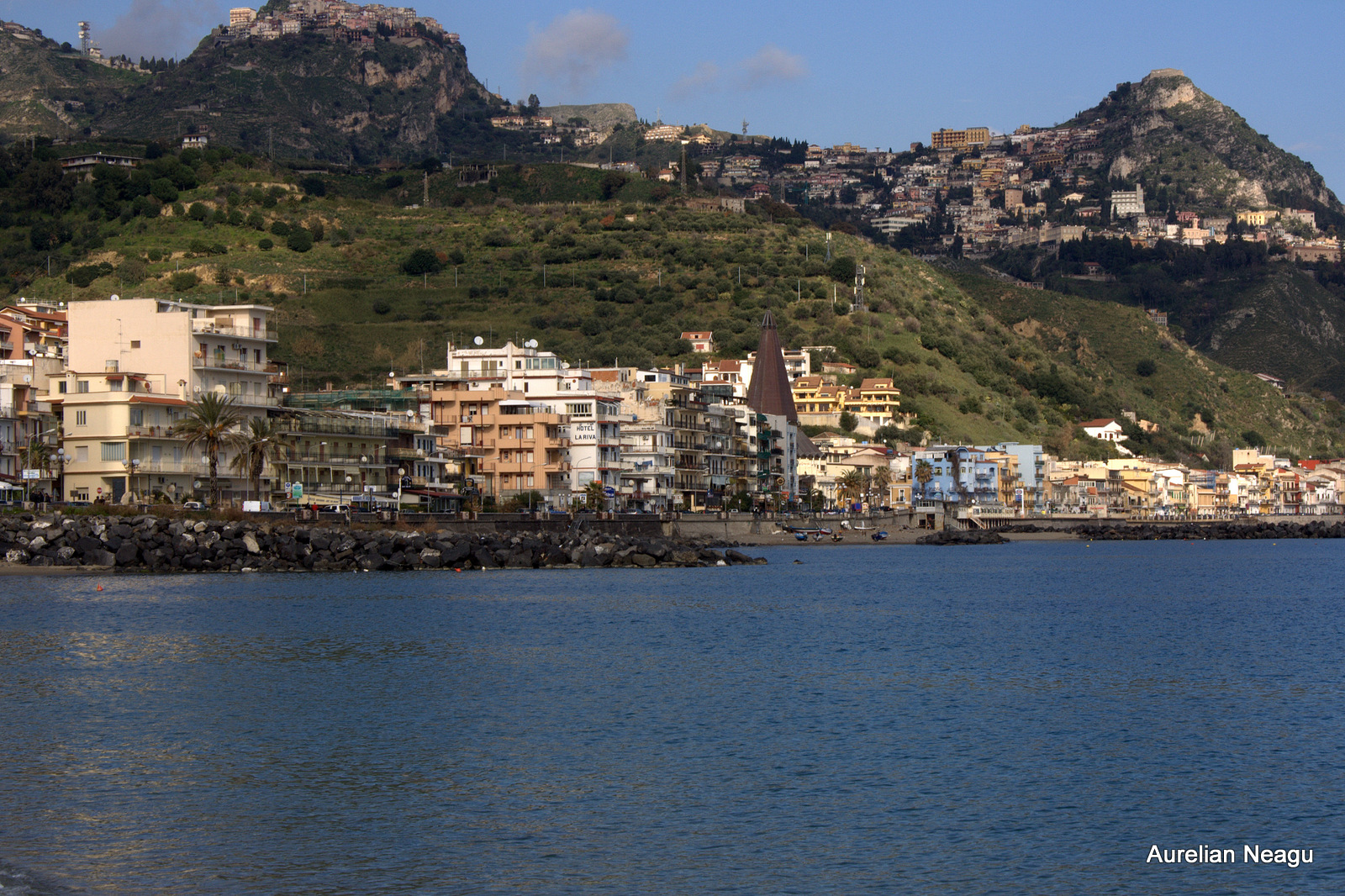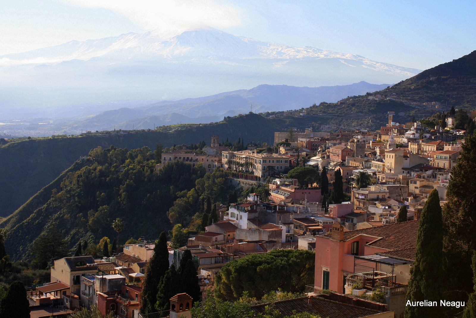 Taormina, unul dintre orăşelele fondate de greci, este probabil cel mai faimos orăşel din Sicilia. A fost construit de colonizatorii greci pe o stâncă înaltă, deasupra mării şi mergând acum pe străzile sale şi mai ales în Amfiteatrul Grecesc din Taormina, poţi vedea vulcanul Etna din apropiere.
