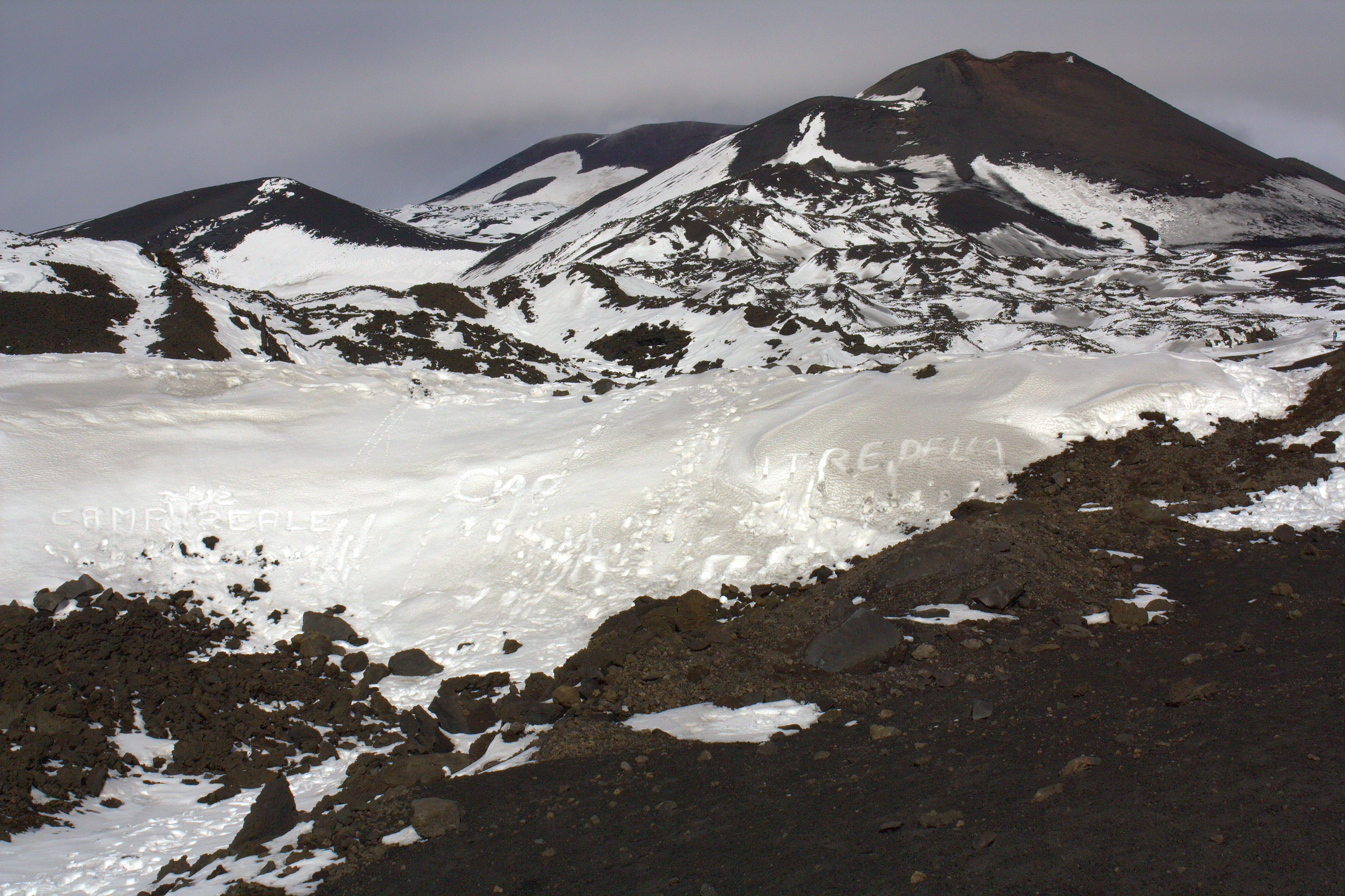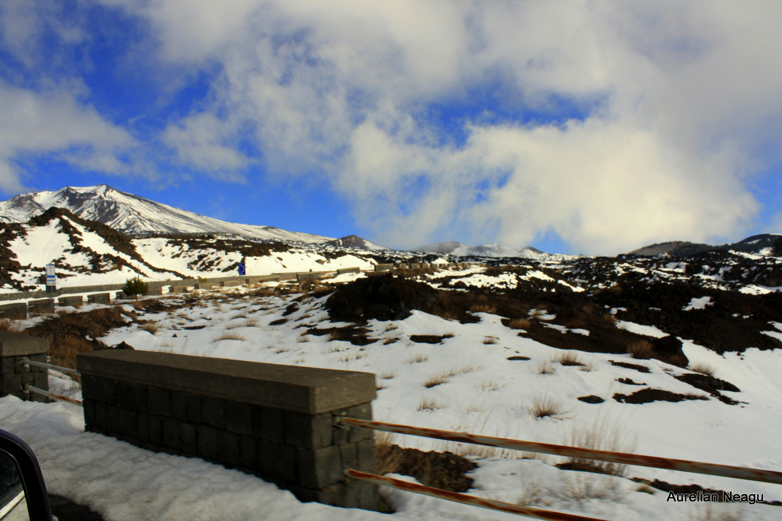 Aşa că plin de speranţă, mă sui în maşină pentru că astăzi urcăm pe vulcan. Maşina urcă din ce în ce mai sus şi zăpada începe să apară…e ciudat să vezi zăpadă în Sicilia…Chiar coborâm din maşină şi ne batem cu zăpadă. Cine ar putea crede aşa ceva?