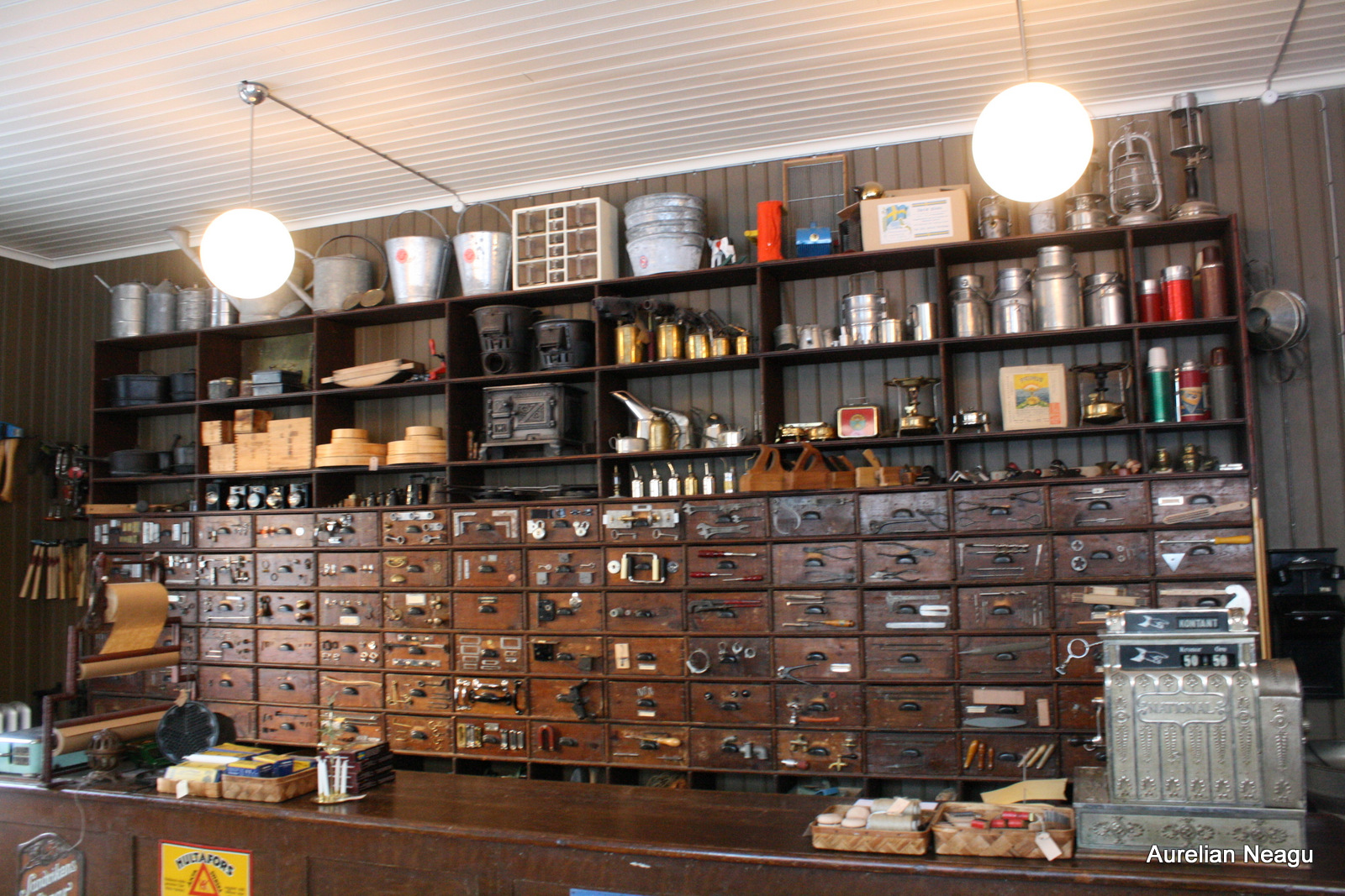 În interiorul muzeului a fost recreat şi un mic orăşel suedez din secolul 19. Pentru a intra în atmosfera din trecut, poţi vizita magazine de fierărie şi sticlărie, şi chiar o brutărie. Într-un astfel de magazin, vânzătorii sunt îmbrăcaţi tradiţional şi tot ce este expus face trimitere la trecut.