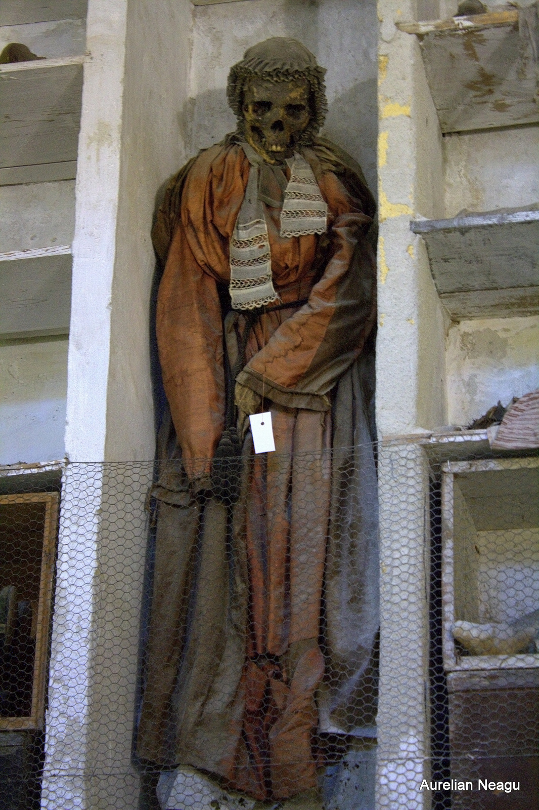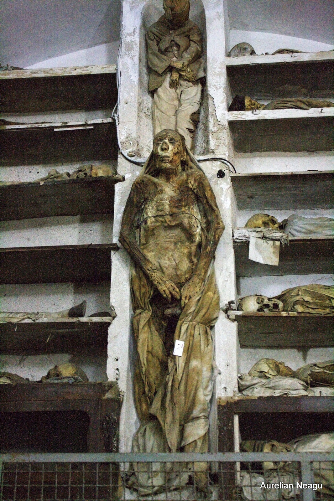 În catacombe nu ai voie să faci poze, dar nu mai este nimeni aici jos, cu morţii, în această superbă dimineaţă de iarnă, în Palermo. Aşa că mă risc, scot aparatul şi încep să pozez în stânga şi-n dreapta. Din nou, am acel sentiment de linişte şi protecţie pe care doar apropierea morţii ţi-l poate da. Mă simt ca şi cum aş privi lucrurile la rece şi doar înregistrez ce văd în jur.