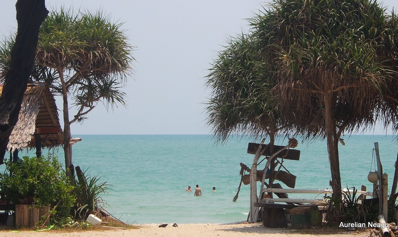 Pe plajă apar oameni abia în weekend, îmbrăcaţi până în gât şi acoperiţi total şi nu prea se omoară să intre în apă. Exact, sunt turiştii thailandezi care vin cu toată familia, se aşează undeva la umbră, îşi aşează mâncarea pe o pătură şi stau acolo cu orele. Cel mult intră 2 sau 3 metri în apă şi atât. Având grijă desigur să fie îmbrăcaţi. Apoi se întorc la păturică şi continuă să mănânce. Din ce am putut observa, de la depărtare desigur, conversaţia aprinsă (sau de orice fel) nu pare a fi sport naţional, ca la unele popoare.