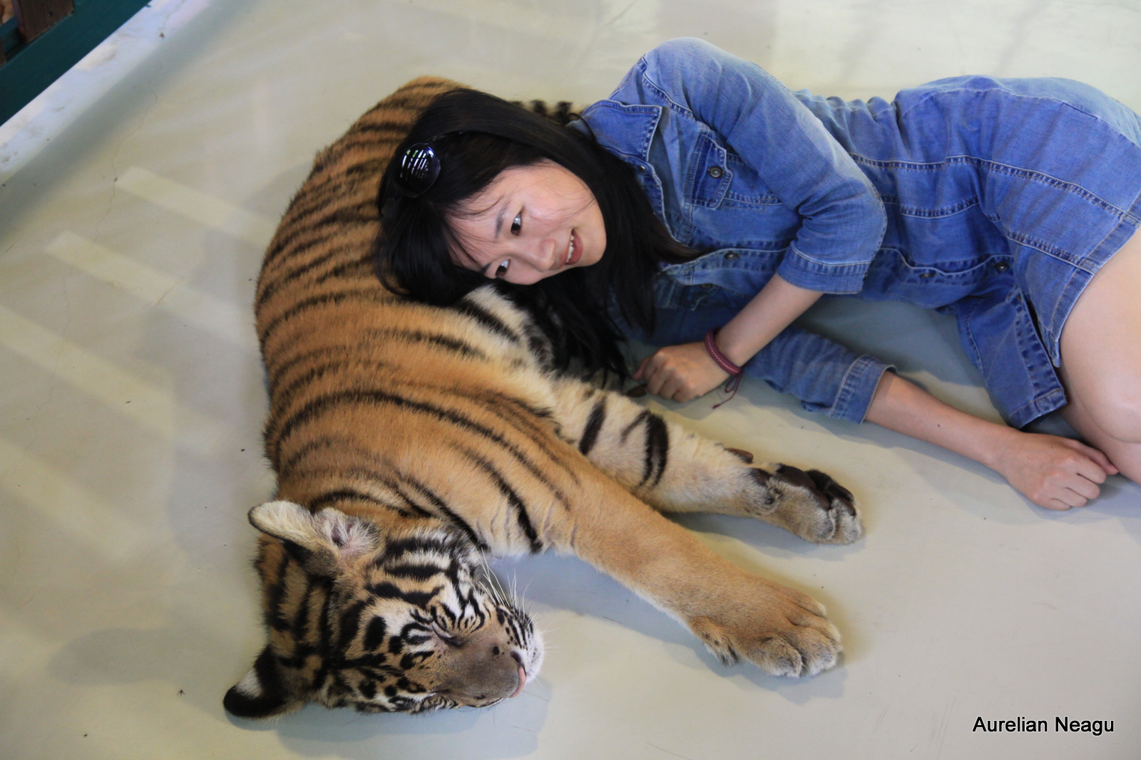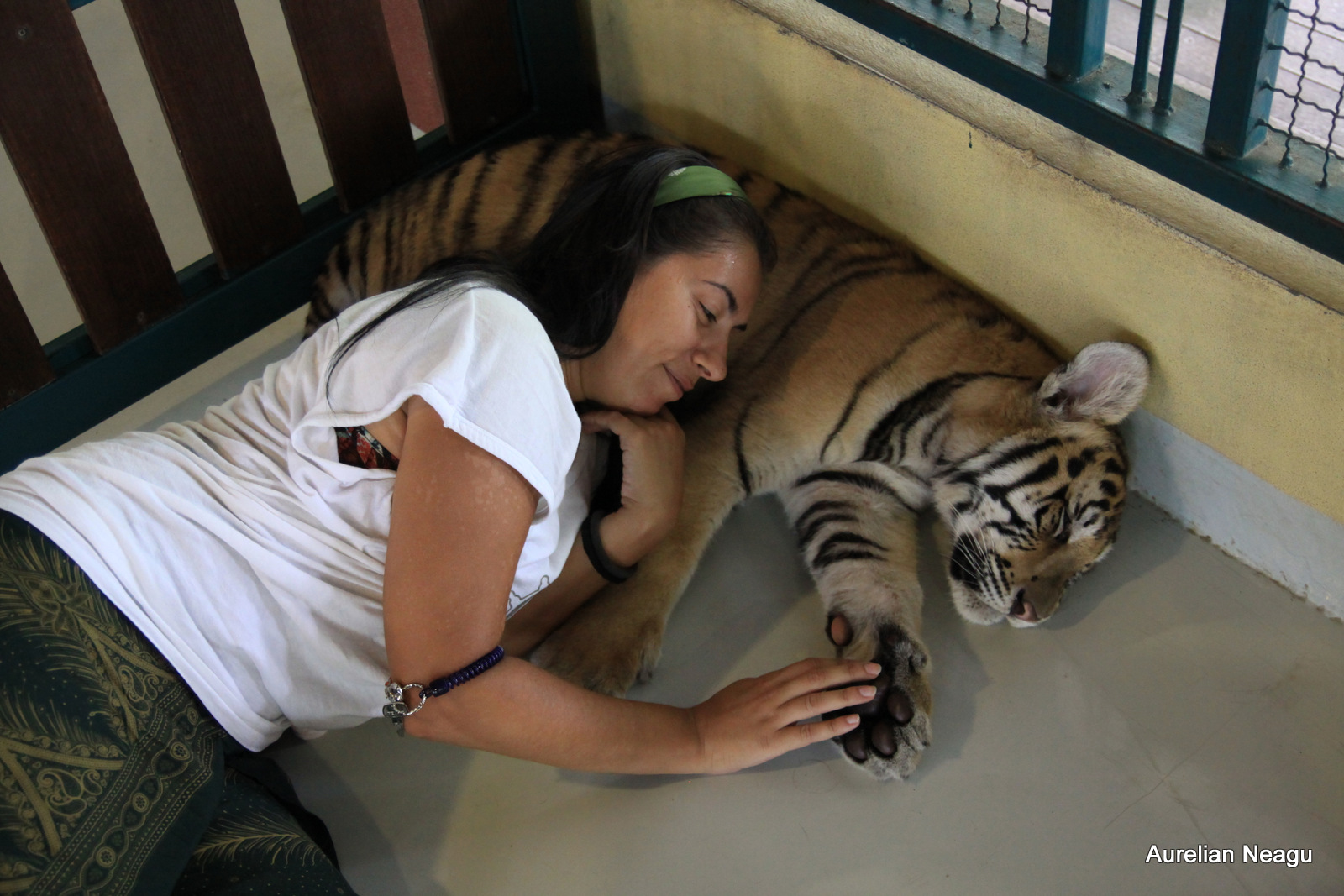 După câteva minute, vine în sfârşit persoana care te duce lângă tigru şi stă cu tine pe toată perioada vizitei. De asemenea îţi dă şi instrucţiuni unde să stai, cum să atingi tigrul, ce să faci şi ce nu.