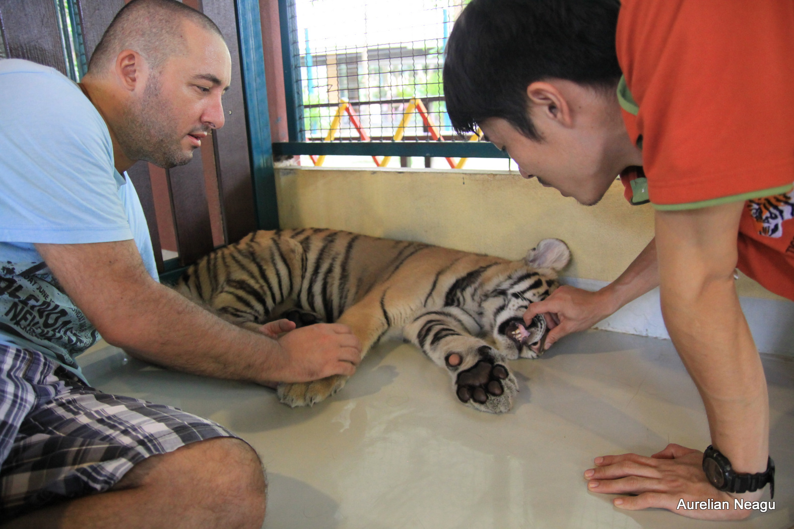 După ce aşteptăm 10 minute, un alt thailandez vine şi ne duce în locul unde sunt tigrii pe care am ales să-i vedem.