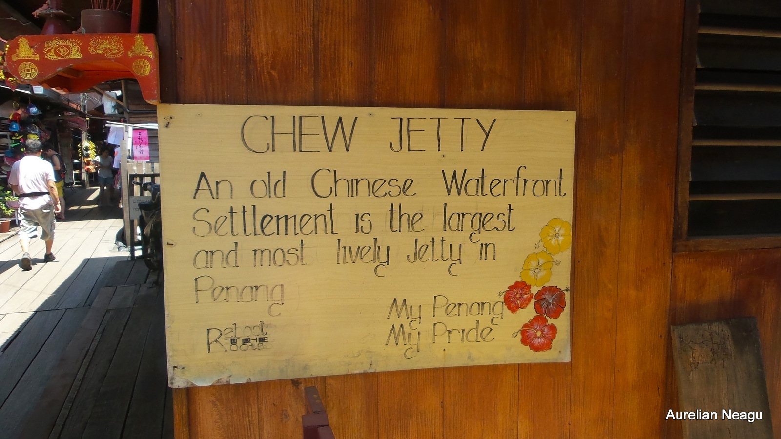 Aceste aşezări pe apă au fost construite în secolul 19 de primii colonişti chinezi din Penang. Chew Jetty este cea mai întinsă aşezare pe apă din George Town şi aparţinea clanului Chew, unul dintre clanurile principale de chinezi de pe insulă.