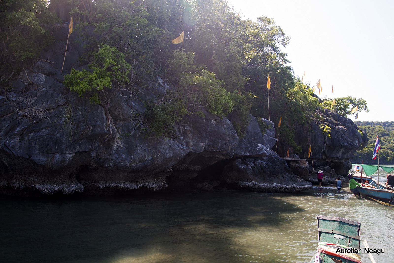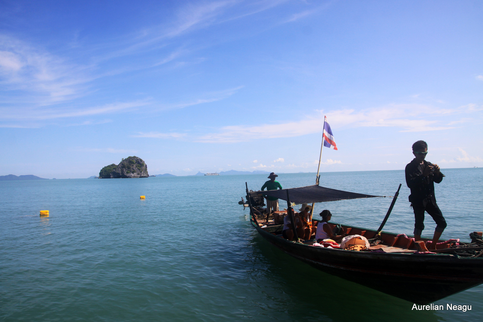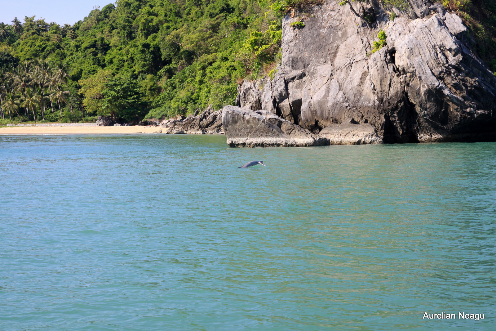 Aşa că într-o zi ne-am mobilizat cu toţii şi împreună cu Saifon şi unchiul său am plecat într-o plimbare de câteva ore pentru a vedea delfini roz, insuliţe pustii, plaje singuratice, porţiuni de junglă neexplorată şi mai ales ţărmul văzut din Golful Thailandei care te face să crezi că aceasta este Thailanda de la început, cea care nu s-a schimbat niciodată şi te-a aşteptat pe tine să o descoperi.