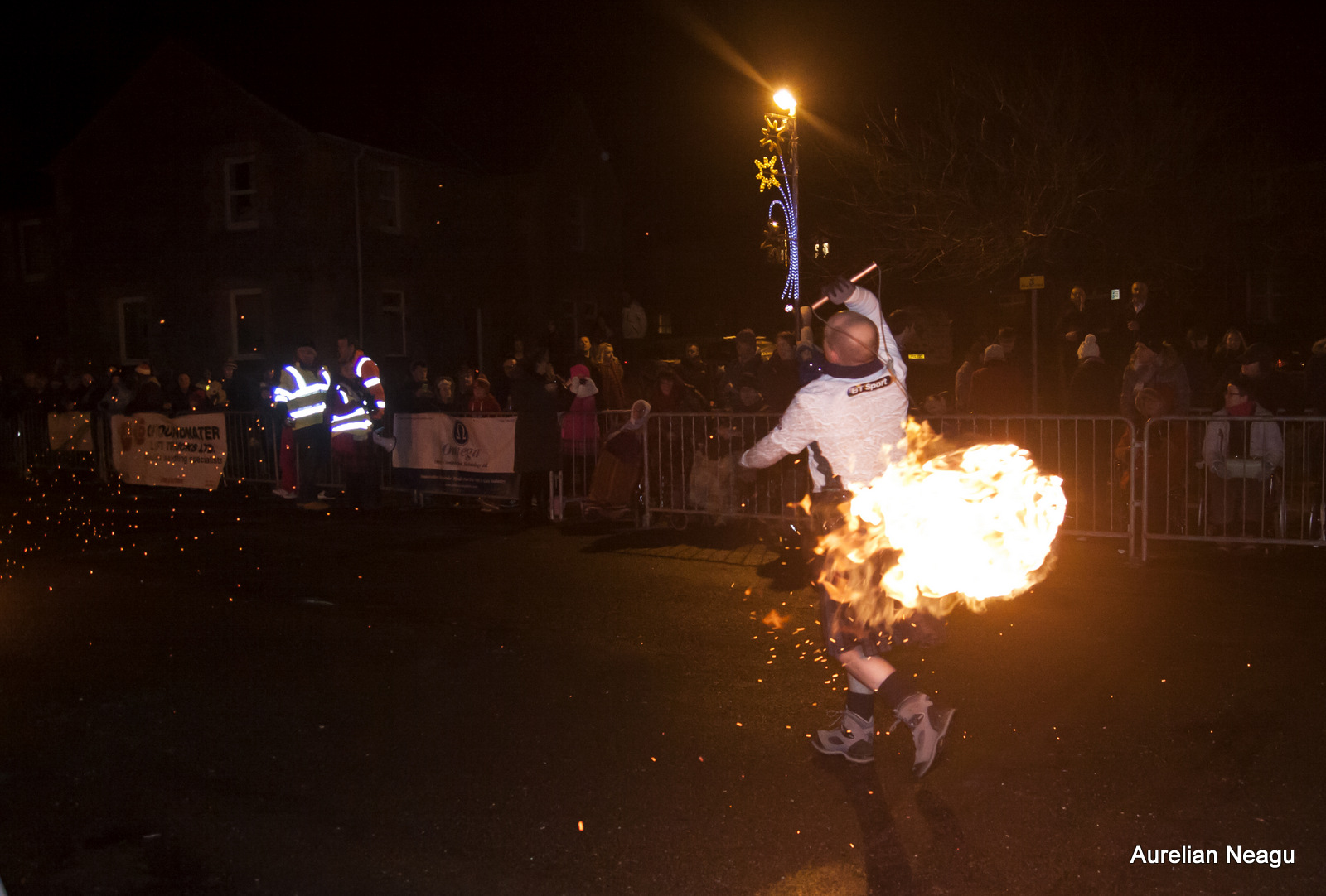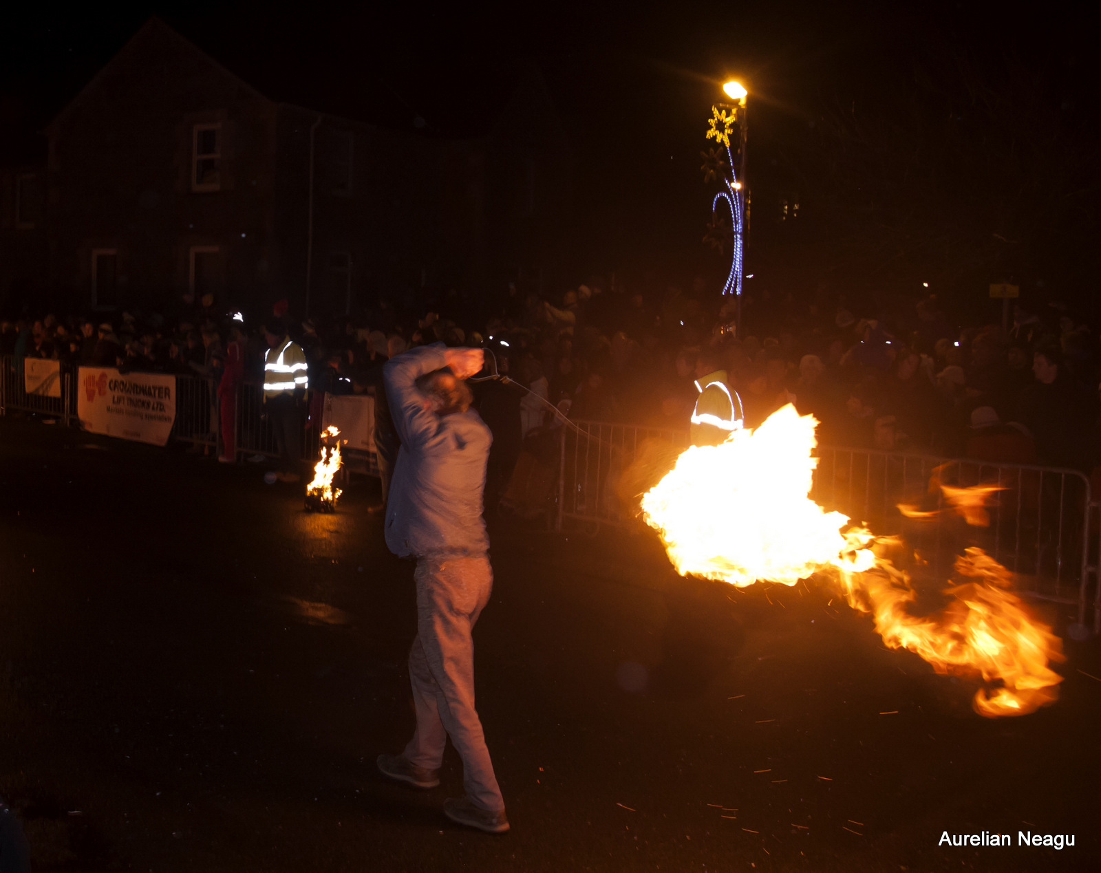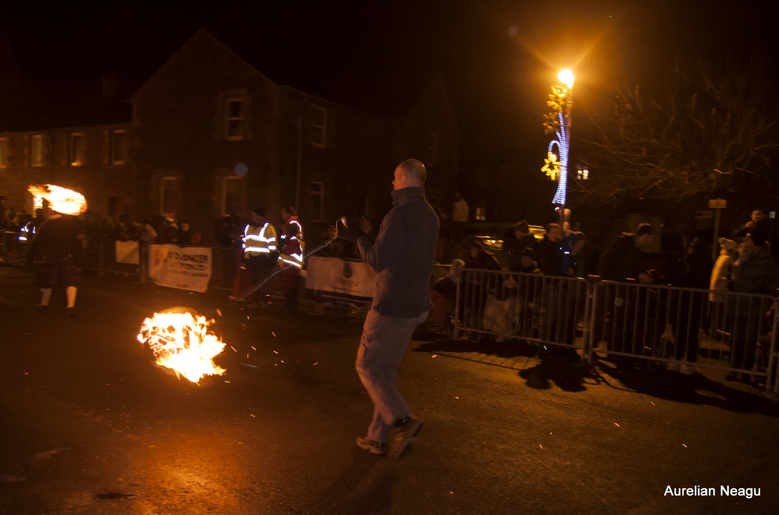 Ceremonia începe la miezul nopţii cu oameni care merg pe strada principală şi rotesc bilele de foc în jurul lor. După aproximativ 30 de minute şi după ce au dat mai multe ture dintr-un capăt în altul al străzii, aceştia se opresc.