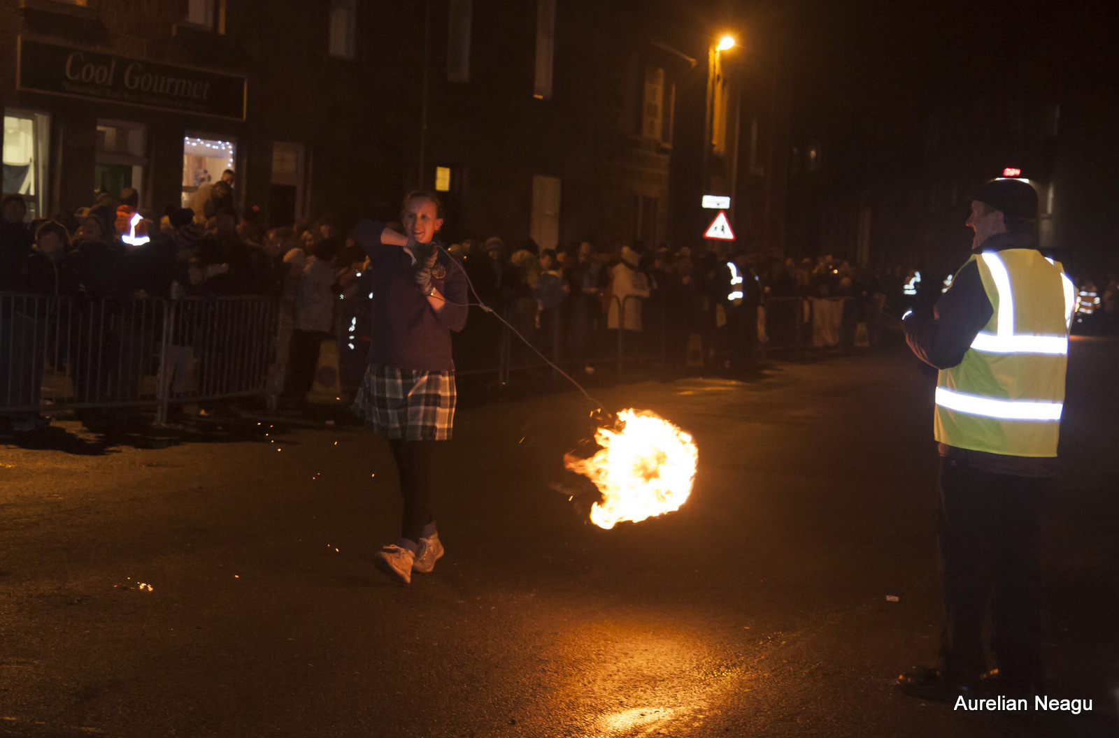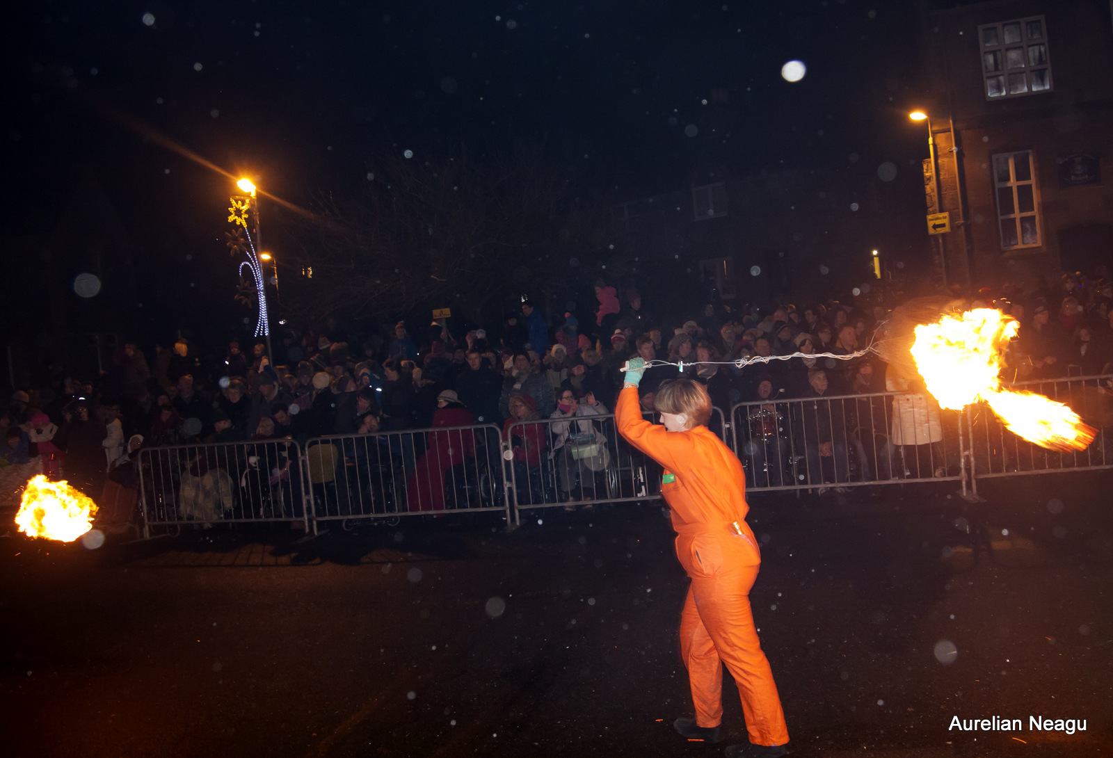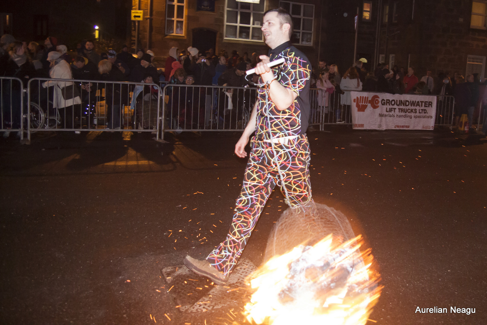 Ceremonia începe la miezul nopţii cu oameni care merg pe strada principală şi rotesc bilele de foc în jurul lor. După aproximativ 30 de minute şi după ce au dat mai multe ture dintr-un capăt în altul al străzii, aceştia se opresc.